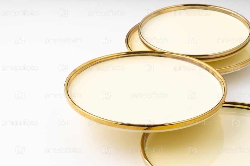 Золотая роскошная керамическая посуда на белом фоне
