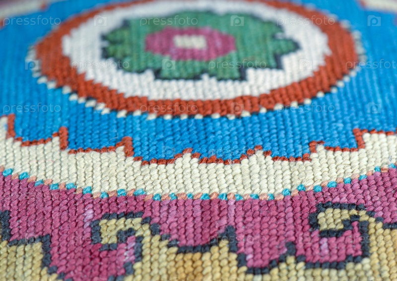Крупный план национальных орнаментов и узоров Средней Азии на куске ткани