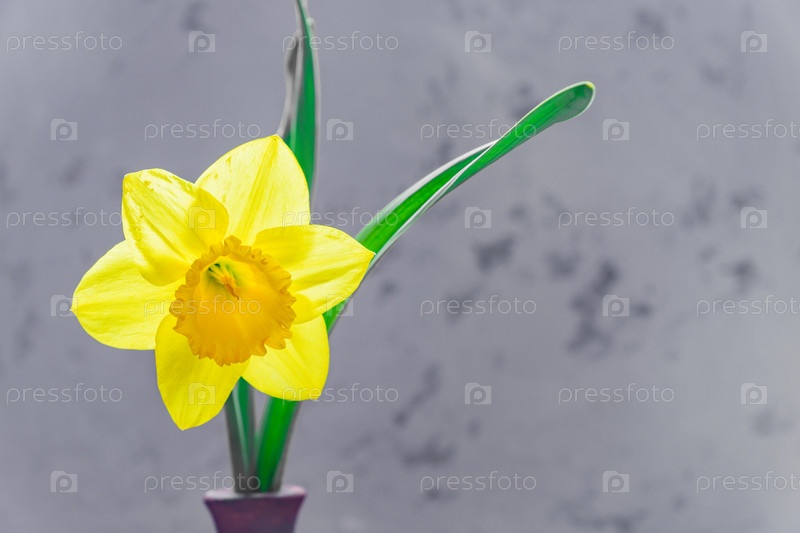 Цветущий желтый нарцисс или нарцисс цветок инкрустированная ваза на сером фоне