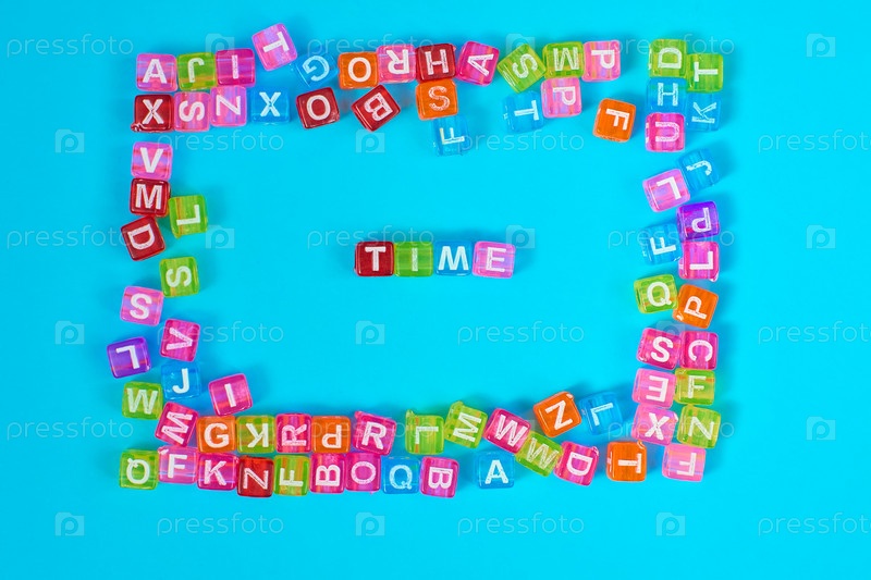 Надпись TIME из разноцветных кубических бумаг с буквами. праздничная концепция на синем фоне с копировальным пространством