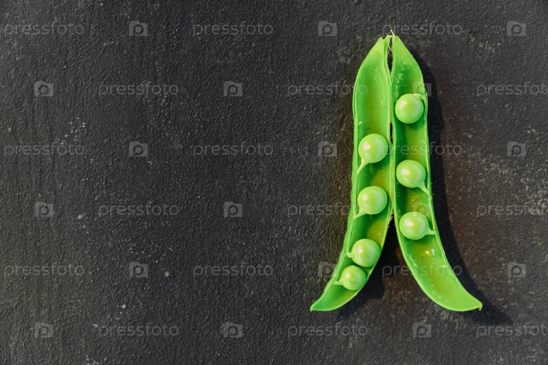 Овощной фон с копией пространства для ваших проектов. Крупный план свежего спелого зеленого горошка на черном фоне