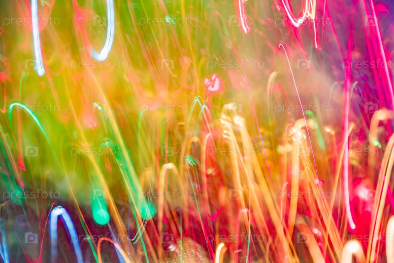 Многоцветные неоновые зеленые и розовые огни на заднем плане. Свечение бликов боке. Праздничный фон