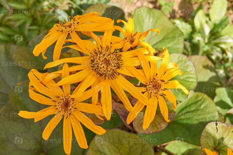Лигулярия зубчатая. Яркие желтые цветы в саду