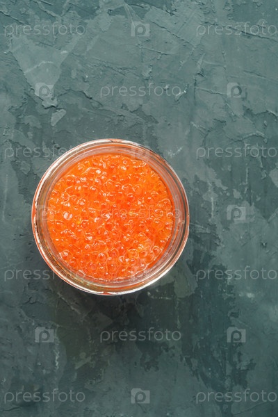 Красная икра на стеклянном гриле на сером фоне, морепродукты. Здоровое питание и диета. Скопируйте место для текста