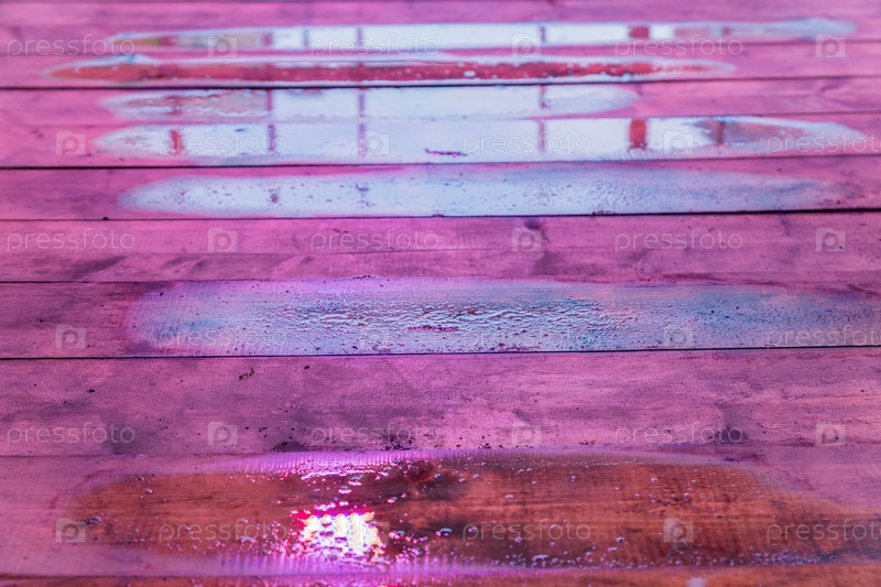 Влажный деревянный стол под светодиодной подсветкой. Фоновая текстура