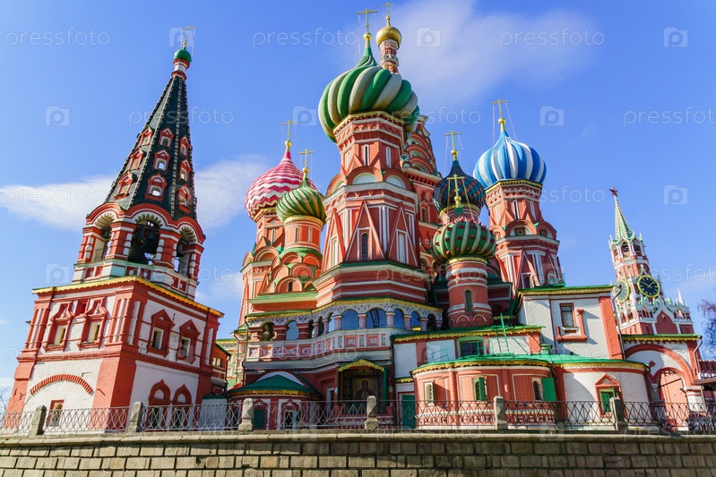Собор Василия Блаженного и Спасская башня на Красной площади в Москве