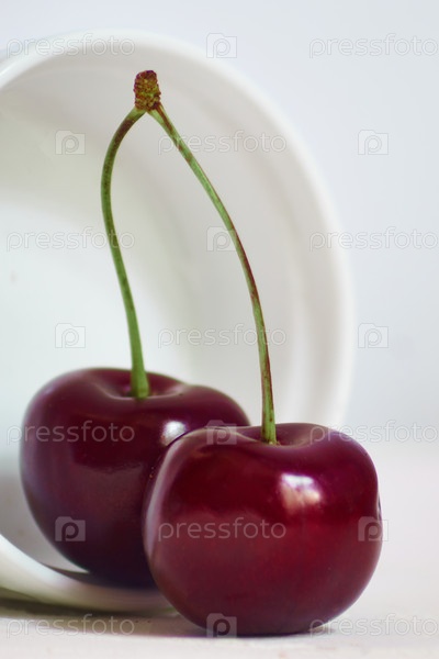 Закрыть вишню на белом бетонном фоне с копией пространства