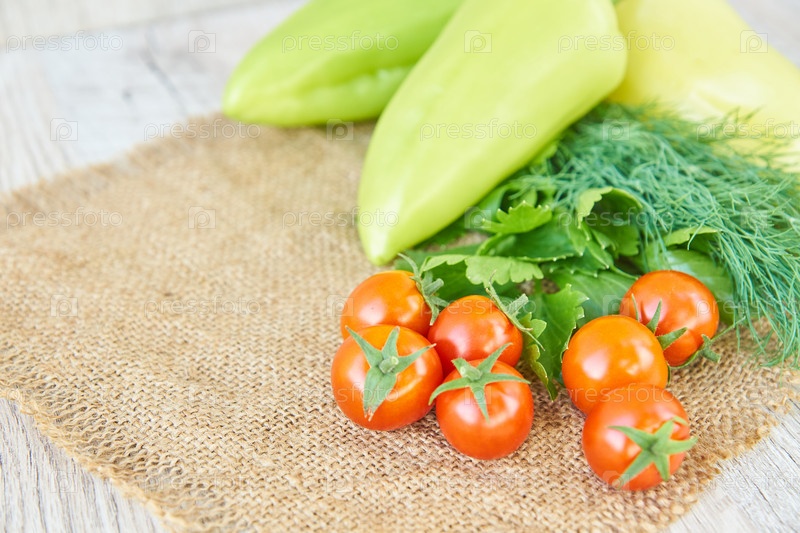 Закройте свежемаринованный урожай овощей - сладкий перец, дрель и помидоры на деревянном столе. Деревенский стиль. Концепция органического здорового питания с копировальным пространством