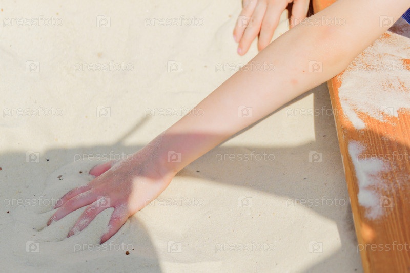 Крупный план детских рук, играющих в песочнице