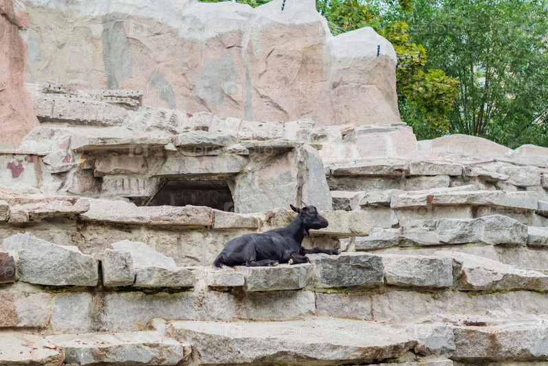 Спящая коза в зоопарке Домашнее животное в природе
