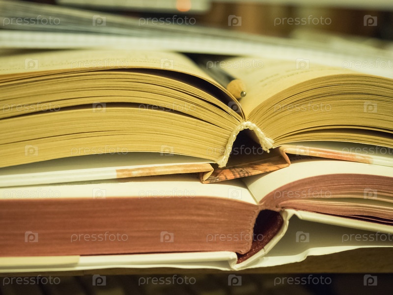 Несколько открытых книг лежат на столе