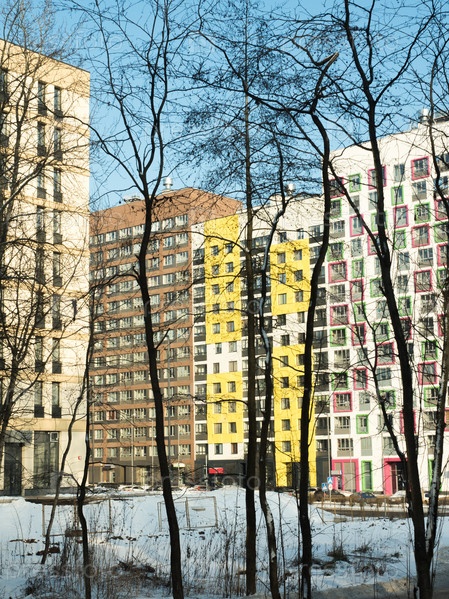 Новый современный жилой комплекс зимой
