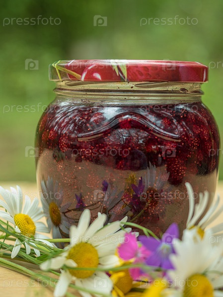 Одна банка варенья из спелой земляники