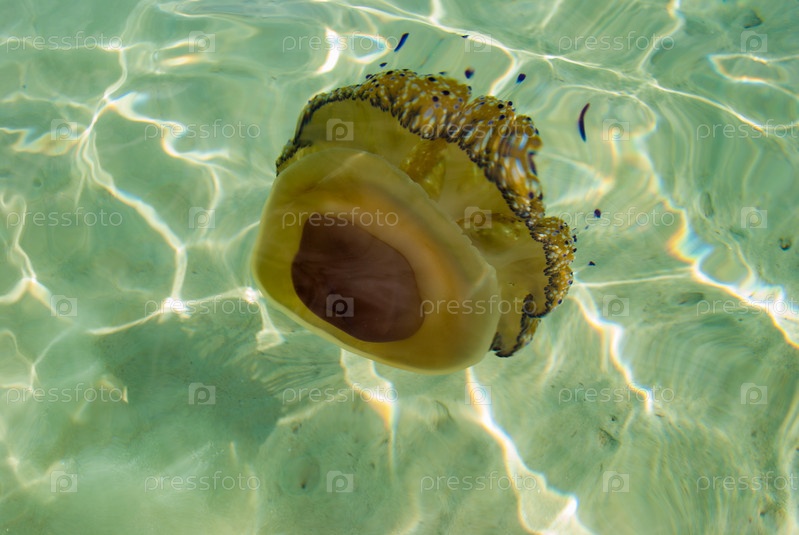 Средиземноморская медуза Cotylorhiza в море у берегов Греции