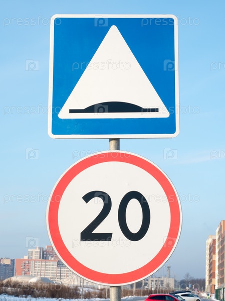 Дорожный знак 5.20 «Искусственная неровность» и 3.24 «Ограничение максимальной скорости» 20 км