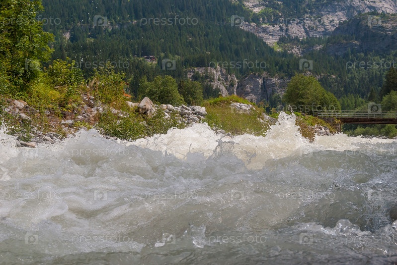 Бурная горная река в швейцарских Альпах, Гриндельвальд, Швейцария