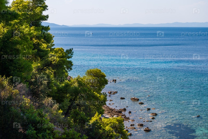 Вид на море через сосновый лес, Халкидики Греция