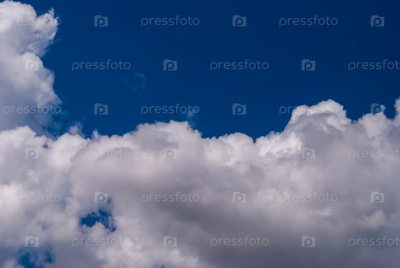 Белые кучево-дождевые облака на фоне голубого неба