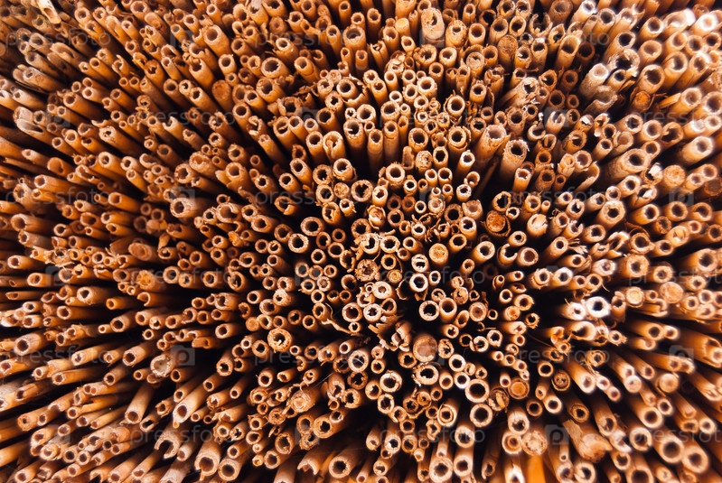 Крупный план, поперечное сечение натуральных бамбуковых тростей