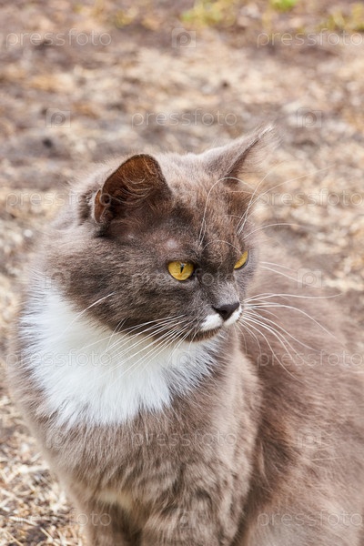 Кот гуляет во дворе дома