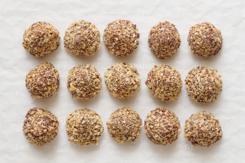 Шоколадные трюфели в вафельной крошке, вид сверху