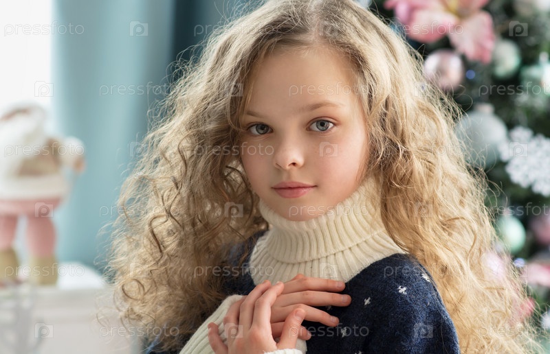 Портрет милой девочки, смотрящей в камеру. Рождественское время