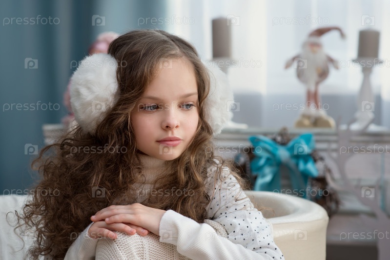 Портрет милой девочки, смотрящей в камеру. Рождественское время