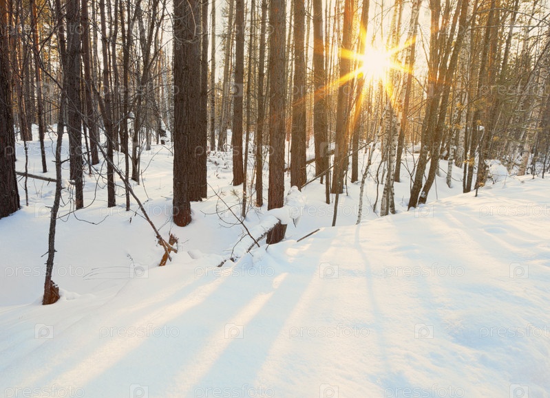 Вечер зимний лес