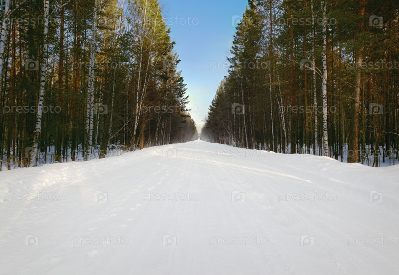 Холодная и снежная зимняя дорога