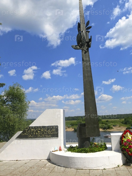 Мемориал в городе Таруса летом с надписью: "Вечная слава жителям Тарусы, павшим в боях за Родину в 1941-1945 гг."