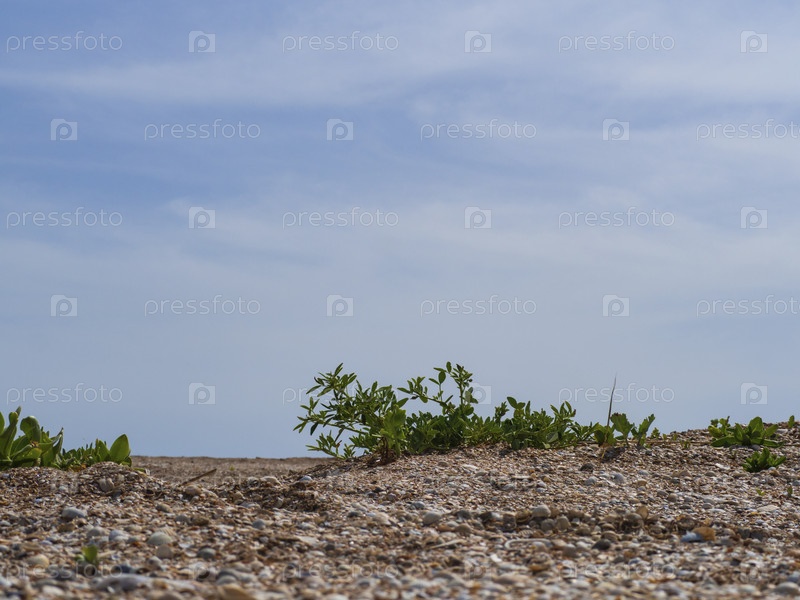 Молодые побеги зеленой травы пробиваются сквозь толщу ракушки и тянутся к голубому небу легкими еле заметными белыми облаками