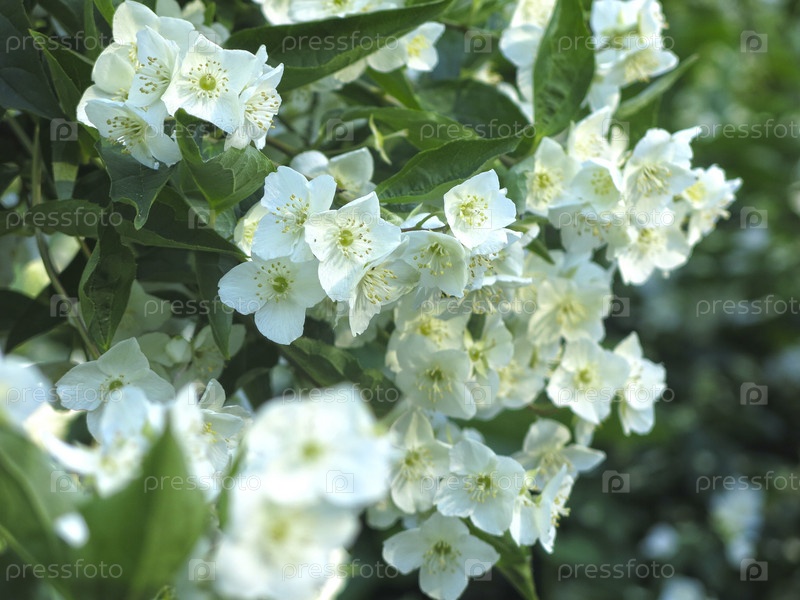Жасмин летом благоухает на кусте в саду,чубушник