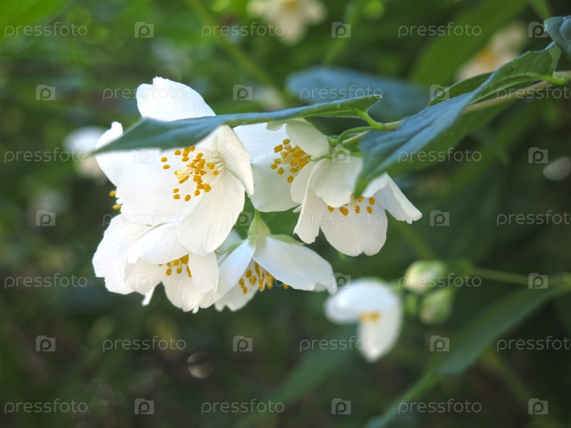 Жасмин летом благоухает на кусте в саду,чубушник