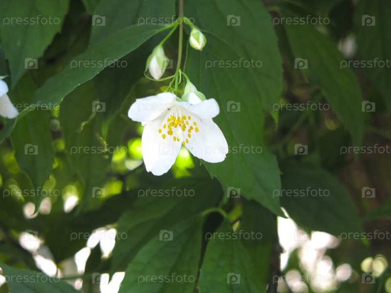 Жасмин летом благоухает на кусте в саду