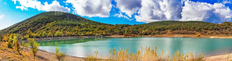 Озеро и горы в крыму в солнечный осенний день