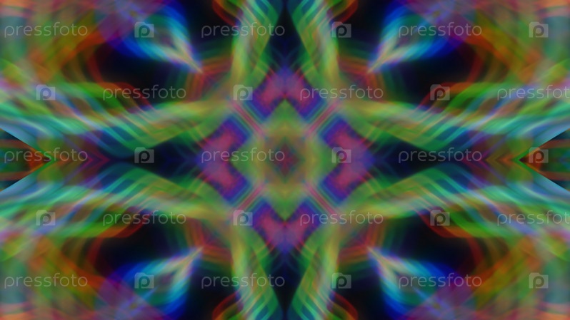 Абстрактный симметричный разноцветный светящийся фоновый калейдоскоп. Дизайн, искусство