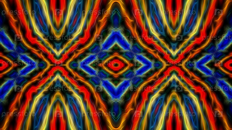 Абстрактный симметричный разноцветный светящийся фоновый калейдоскоп