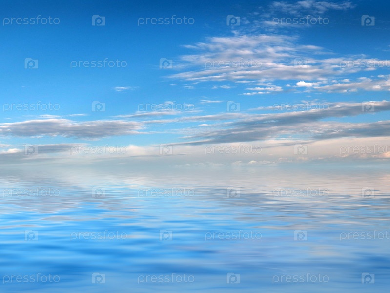 Отражение солнечного летнего неба в спокойной воде океана