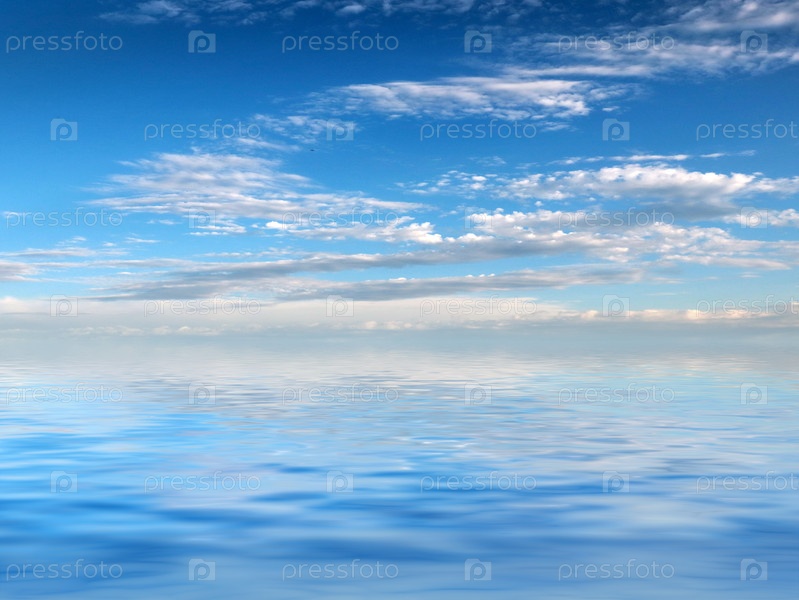 Отражение солнечного летнего неба в спокойной воде океана