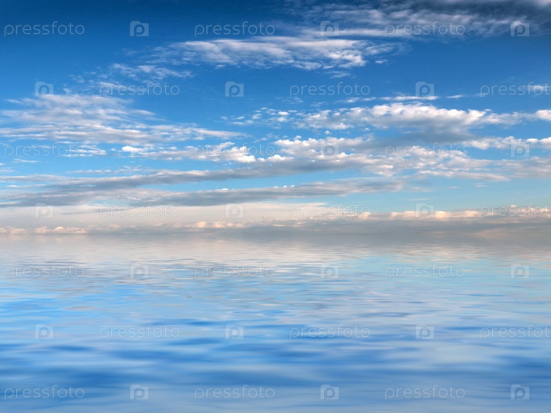 Отражение солнечного летнего неба в спокойной воде океана
