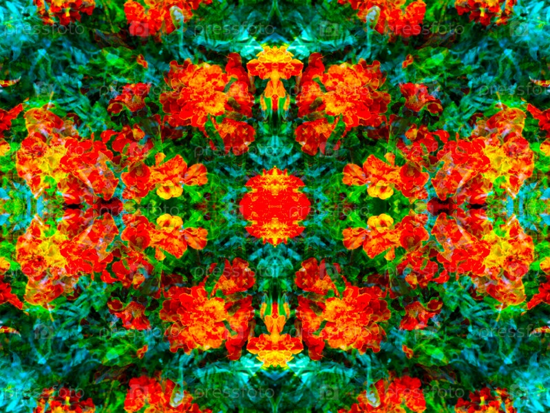 Красивый симметричный узор, составленный в калейдоскопе из элементов живой природы