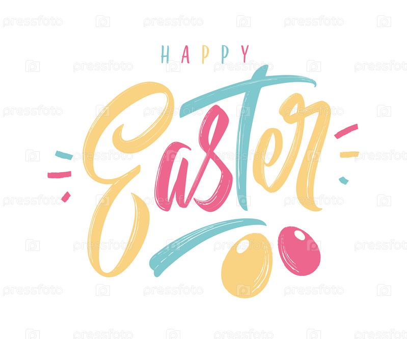 Счастливой Пасхи рукописные надписи. Счастливый Пасхальный типографский векторный дизайн для поздравительных открыток и плакатов. Празднование шаблона дизайна. Векторная иллюстрация