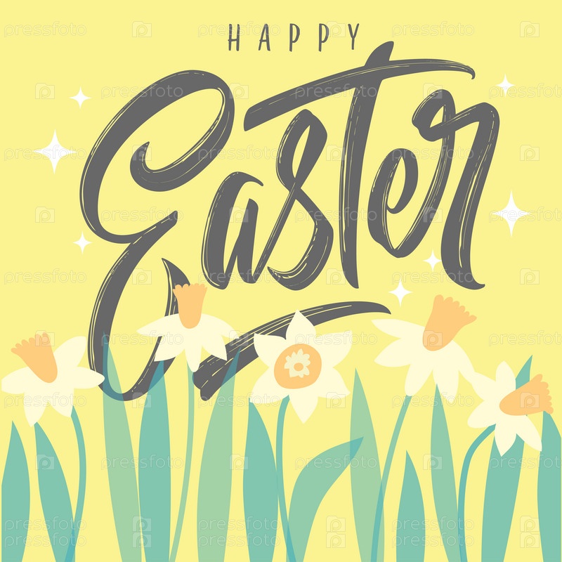 Счастливой Пасхи рукописные надписи. Счастливый Пасхальный типографский векторный дизайн для поздравительных открыток и плакатов. Празднование шаблона дизайна. Векторная иллюстрация