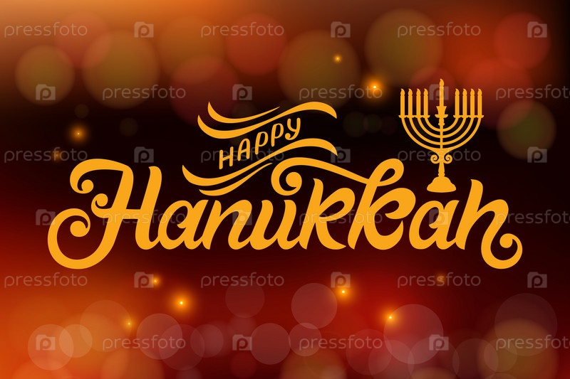 Счастливый векторный дизайн типографии Хануки для поздравительных открыток и празднования шаблона дизайна плаката. Каллиграфические надписи ручной работы. Ханука красивая надпись. Векторная иллюстрация