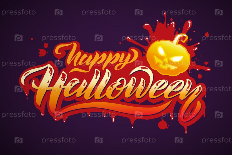 Счастливый Хэллоуин векторные надписи. Праздничная надпись для баннера. Счастливый Хэллоуин плакат, поздравительная открытка, приглашение на вечеринку. Векторная иллюстрация., Счастливый Хэллоуин векторные надписи. Праздничная надпись для баннера. Счастли