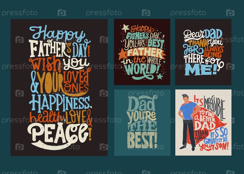 Четыре открытки к празднику День отца. Векторная иллюстрация. Рукописные надписи. Надпись к празднику День отца. Векторный дизайн типографии для поздравительных открыток и плакатов. Шаблон оформления