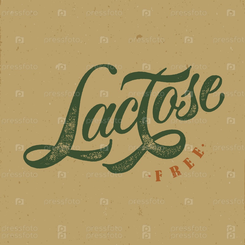 Безлактозный векторный дизайн типографии для медицинских центров, органических и вегетарианских магазинов, плакат, логотип. Безлактозный векторный текст. Каллиграфические надписи ручной работы. Векторная иллюстрация