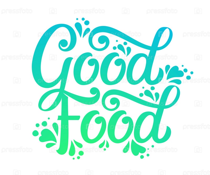 Хороший векторный дизайн пищевой типографии для медицинских центров, органических и вегетарианских магазинов, плакат, логотип. Хороший векторный текст еды на доске. Каллиграфические надписи ручной работы. Векторная иллюстрация