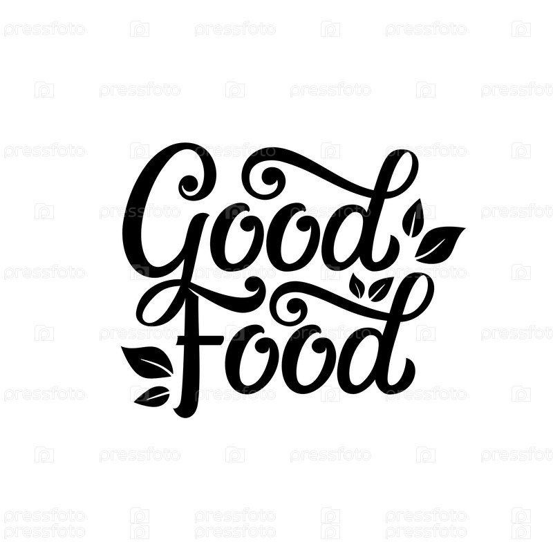 Хороший векторный дизайн пищевой типографии для медицинских центров, органических и вегетарианских магазинов, плакат, логотип. Хороший векторный текст еды на доске. Каллиграфические надписи ручной работы. Векторная иллюстрация