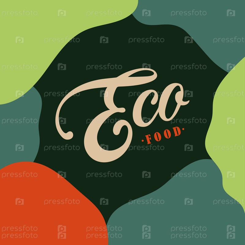 Векторный дизайн эко-пищевой типографии для медицинских центров, органических и вегетарианских магазинов, плакат, логотип. Текст вектора эко еды. Каллиграфические надписи ручной работы. Векторная иллюстрация